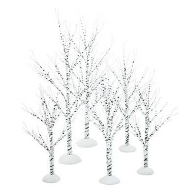 This set of 6 posable frosted birch trees comes in 3 different sizes. These are a perfect addition to any holiday Village display. Manufactured exclusively by Department 56.